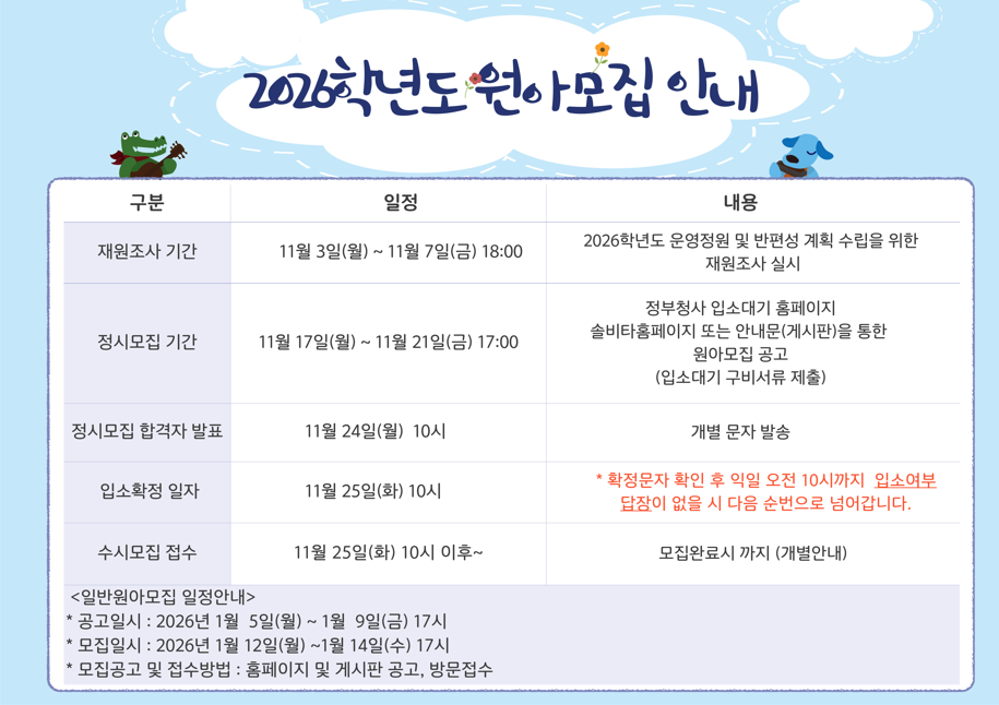 2026Çг⵵ Á¤ºÎ¼¼Á¾Ã»»ç¼ÖºñŸ¾î¸°ÀÌÁý ¿ø¾Æ¸ðÁý ¾È³»